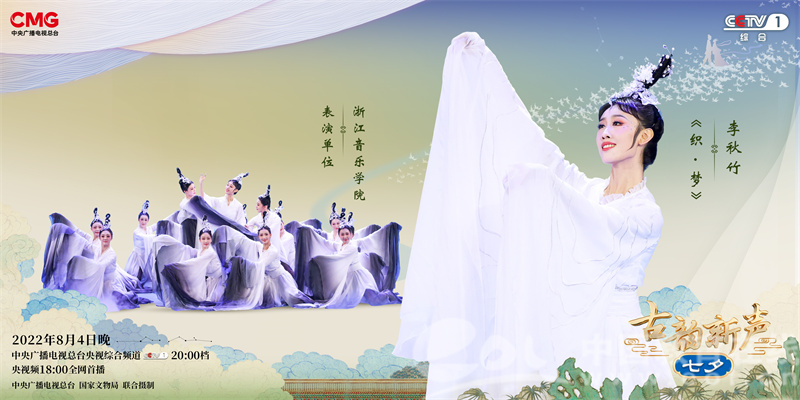 山水流转,鹊桥相会,一舞梦江南。8月4日晚20:00,浙江音乐学院舞蹈学院原创古典舞作品《织·梦》受邀赴北京演出,在央视《古韵新声》七夕主题节目中惊艳亮相。