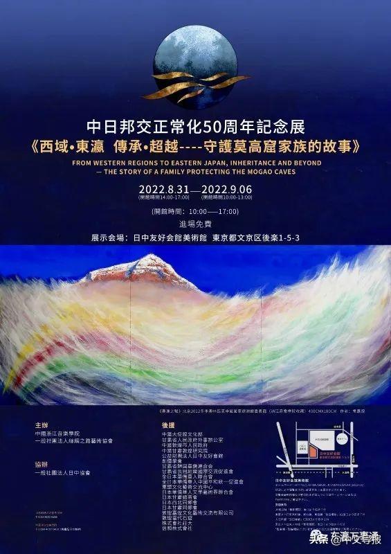 中国浙江音乐学院联袂日本一般社团法人丝绸之路艺术协会,于2022年8月31日至9月6日,在东京日中友好会馆美术馆举办《西域·东瀛传承·超越——守护莫高窟家族的故事》展览,免费向公众、各国驻日文化交流机构、丝绸之路国家文化团体驻东京机构、日本艺术大学校和热爱中国文化、热爱敦煌艺术的团体和个人开放。