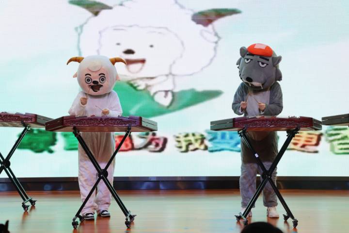 课堂上,经典的动画跨越时空,来到这里——聪明的喜洋洋和努力的灰太狼、华彩绚丽的艾莎公主,黑猫警长和一只耳,扬琴演奏贯穿的经典动画让大家一同沉浸其中,看着孩子们痴迷的神情,仿佛自己就是那行侠仗义、足智多谋的主人公,一颦一笑都随之而动。