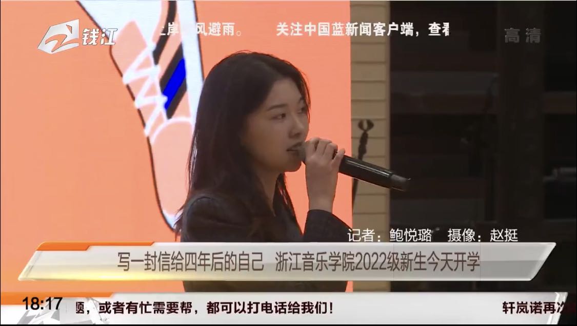 钱江频道:写一封信给四年后的自己 浙江音乐学院2022级新生今天开学