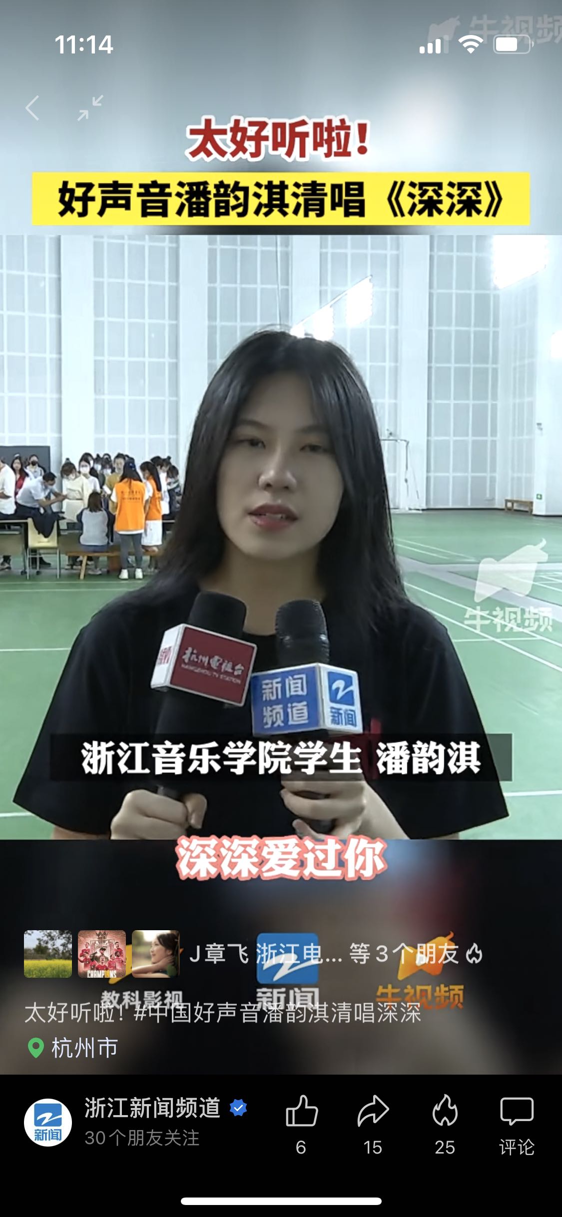 浙江新闻频道视频号:太好听啦!好声音潘韵淇清唱《深深》