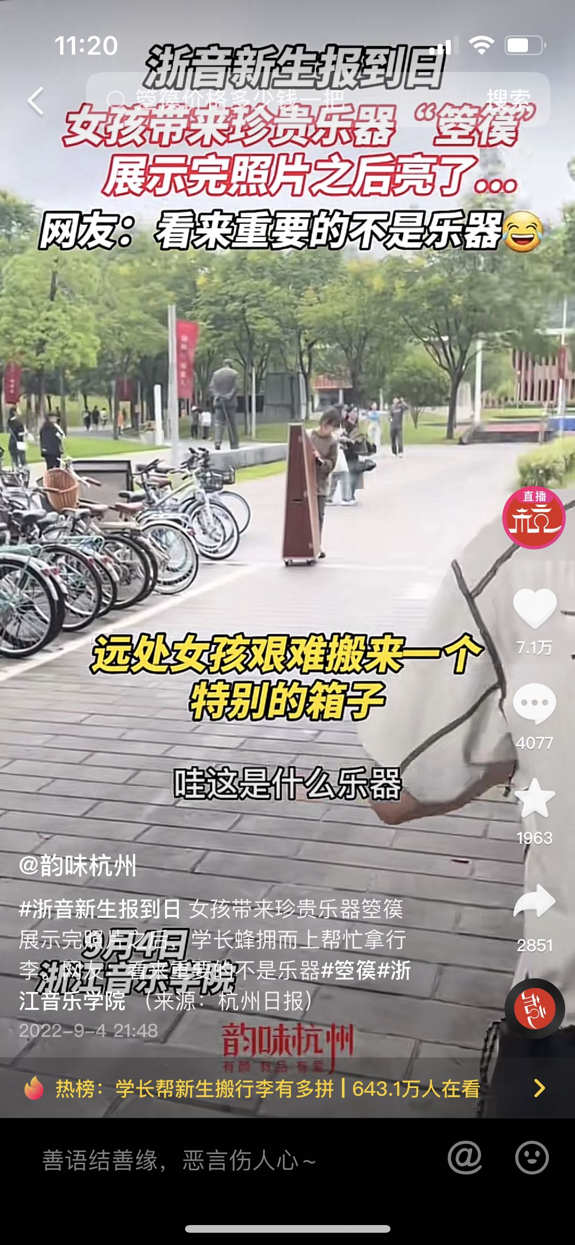 下一篇:韵味杭州:浙江音乐学院2022级新生报到 简直就是乐器大荟萃