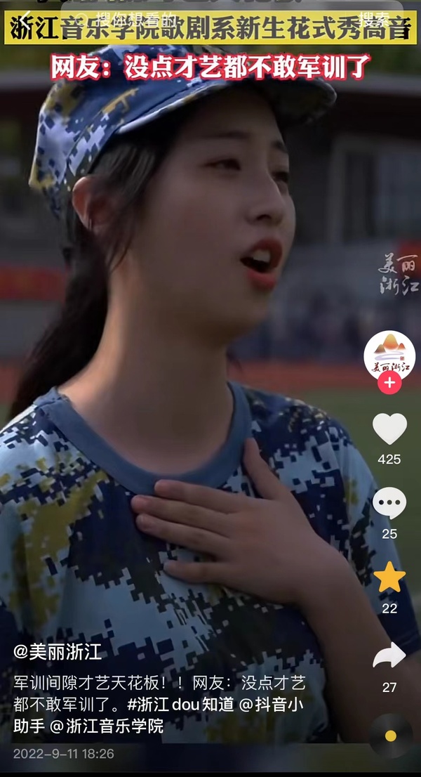 美丽浙江:军训间隙才艺天花板!!!浙江音乐学院歌剧系新生花式秀高音