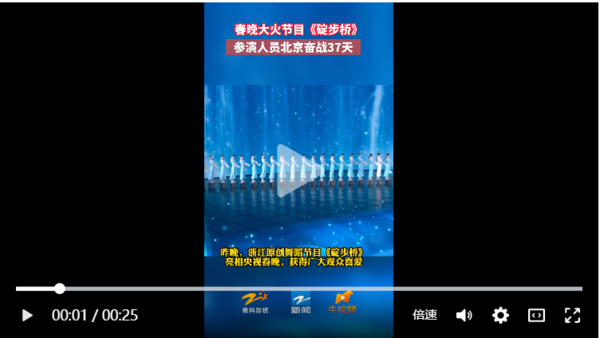 浙江新闻频道视频号:春晚大火节目碇步桥参演人员北京奋战37天