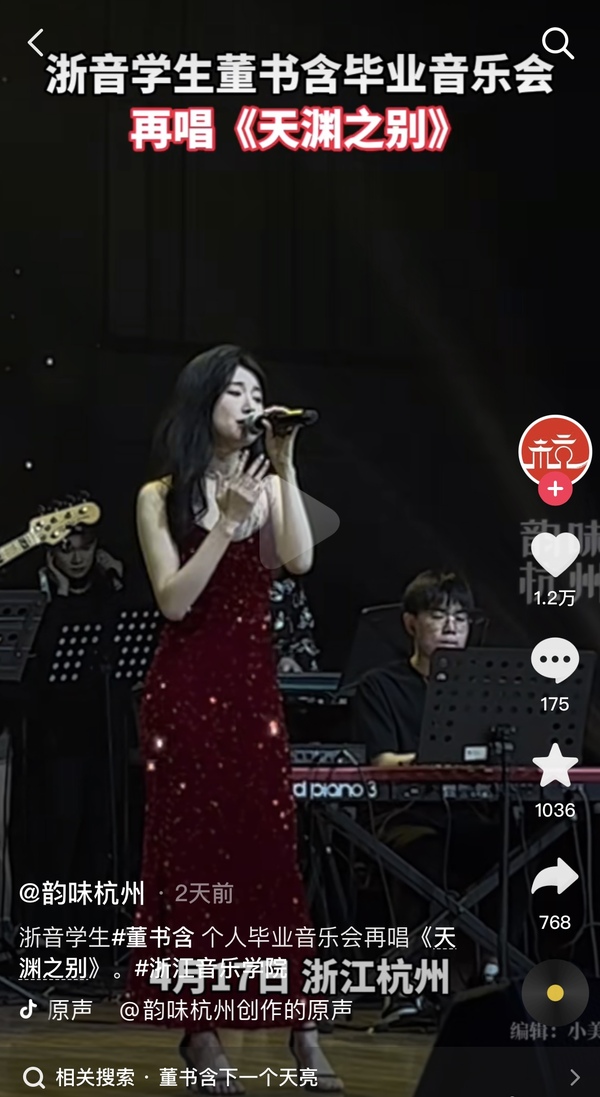 韵味杭州抖音视频号:浙音学生董书含个人毕业音乐会再唱 《天渊之别》