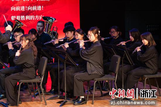 “我们走在大路上,意气风发斗志昂扬,共产党领导革命队伍,披荆斩棘奔向前方。”讲座尾声,浙音管乐团现场演奏了《我们走在大路上》。