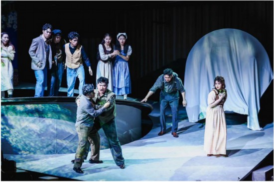 意大利喜歌剧《唐·帕斯夸莱》是歌剧大师多尼采蒂的杰作。该剧描写了“大款”帕斯夸莱的一段黄昏恋,故事幽默风趣,音乐生动优美。在这部剧中,多尼采蒂为女高音角色诺莉娜谱写了诸多优美的旋律,其中咏叹调“少女的秋波”堪称女高音的“试金石”。当晚饰演诺莉娜一角的女高音崔颖钗嗓音柔美悠扬,情感表达细腻真实,用歌声将诺莉娜憧憬爱情、享受青春时光的内心情感表现得淋漓尽致。与诺莉娜陷入热恋的埃内斯托一角由男高音刘一鸣饰演,他的表演同样打动人心。本剧中的“帕老爷”(帕斯夸莱)由田昊岩出演,他音色漂亮纯正、语言规范、唱演俱佳,被认为是当晚《唐·帕斯夸莱》里“最亮的一颗星”。剧中的“喜剧担当”马拉泰斯塔由李天昊出演,这一角色在舞台上插科打诨、出尽诡计,喜剧效果颇佳。