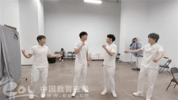 4位男生第一时间找到学钢琴的同学记录琴谱,对照乐谱和节奏背词、试唱,在导演指导下分配段落、练习衔接……他们在最短时间内掌握了这首歌曲,也获得了导演和作曲老师的一致认可。