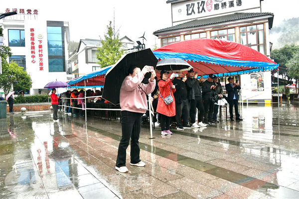 在美丽景色和“丰收节”喜庆气氛的感染下,浙音流行音乐系学生们在下姜村廊桥广场唱响丰收之歌,演出了器乐重奏《夜来香》《海阔天空》,歌曲《最美的太阳》《逆光》《我爱你中国》等村民百姓耳熟能详的流行音乐,传递出同学们探访“红色根脉”的真切感悟,以及祝愿乡村繁荣发展的如火热情。