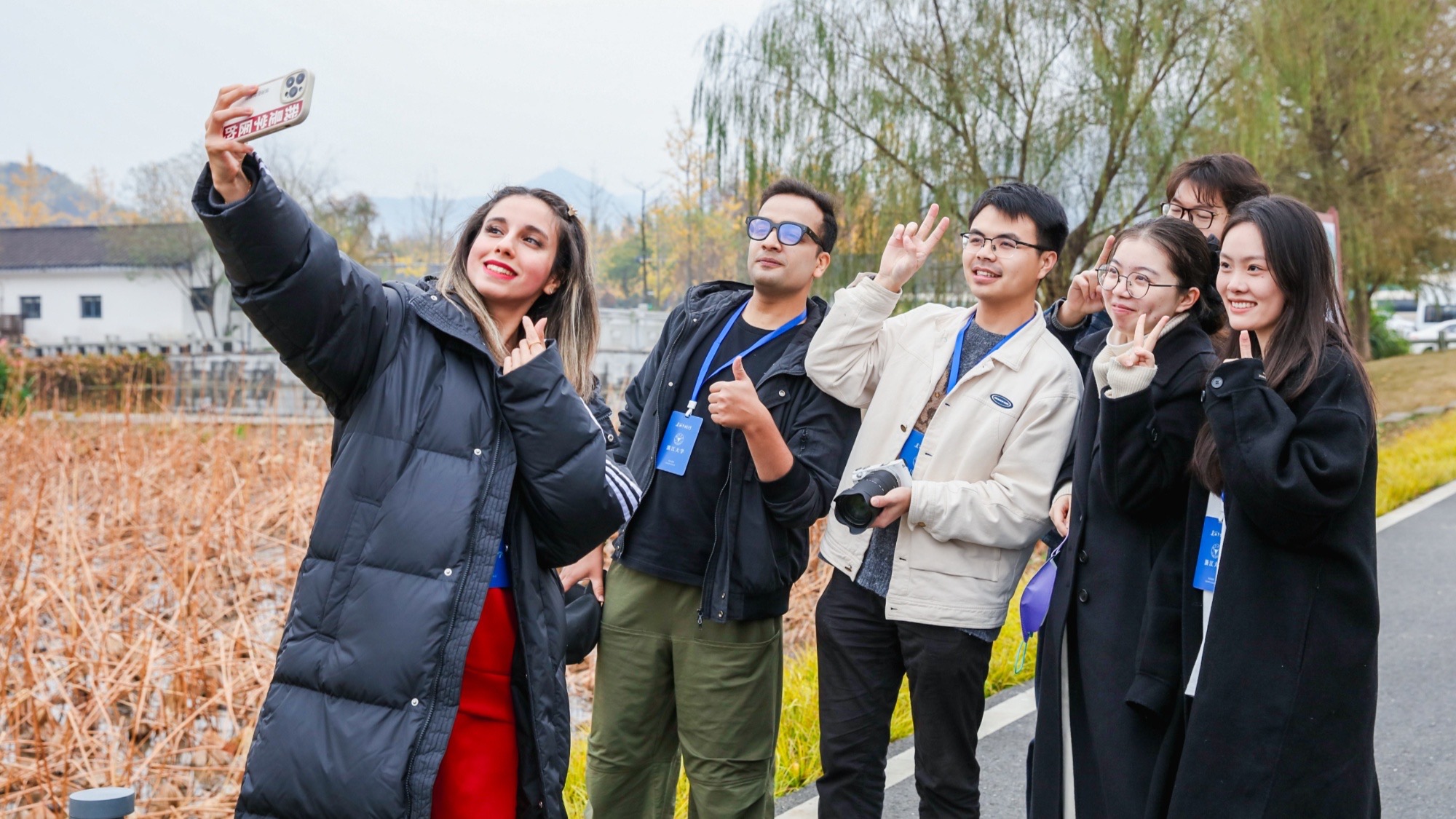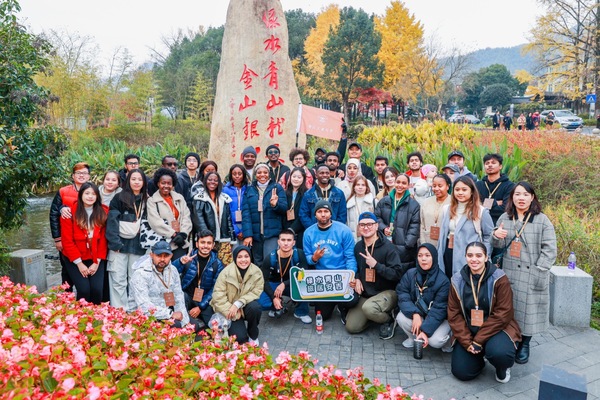 “这里真美!”11月26日上午,在湖州市安吉县天荒坪镇余村“绿水青山就是金山银山”大石碑前,来自浙江工业大学的泰国留学生胜利,兴奋地抓起手机,开始记录走进余村的每时每刻,镜头里尽是美轮美奂的山水美景。