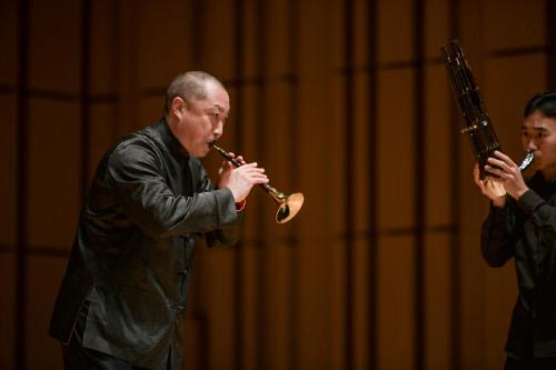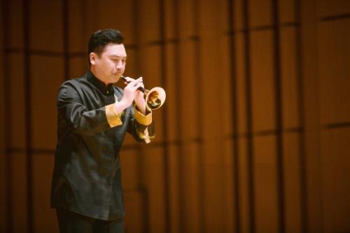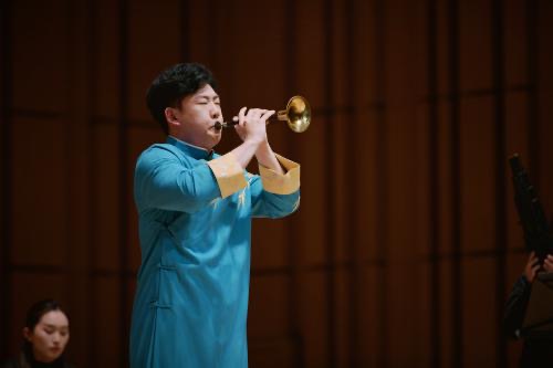 画风一转,浙江音乐学院国乐系学生孔海宇奏出一曲欢快质朴的《二人转牌子曲》,浓郁的地方风格和强烈的生活气息扑面而来。延续上一首乐曲的热烈气氛,音乐会迎来一个小高潮。上海音乐学院民乐系学生赵祥博演奏的《凡子调接叫句子》由流传于安徽民间的两段不同曲牌“凡字调”、“叫句子”组合而成,生动再现了民间唢呐对趣的场景。