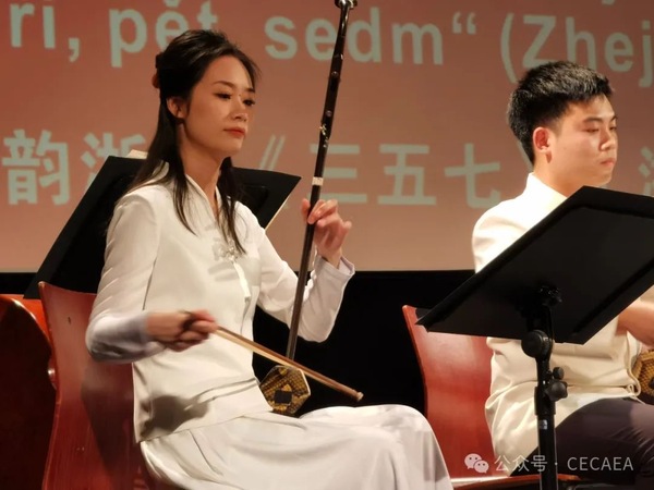当晚,14位来自浙江音乐学院民族室内乐团的艺术家们充分发挥中国传统乐器独特魅力,展现丰富艺术表现形式,为来宾奉上了一场曲目丰富、精彩绝伦的视听盛宴。乐团精选的12首曲目中包含了中国各地的名曲,既有浙江的《采茶舞曲》、江苏的《无锡景》,也有西南歌谣《太阳出来喜洋洋》、湘情湘韵的《浏阳河》、河南小调《编花篮》和有东北年味的《绣灯笼》。为了此次捷克行,浙江艺术家们特地带来了捷克作曲家德沃夏克的第九交响曲(第二乐章)《念故乡》,这是由中国传统乐器演绎的东方版本。当音乐响起,捷克来宾们听着熟悉的曲调,一曲结束,激动地鼓起了热烈的掌声。