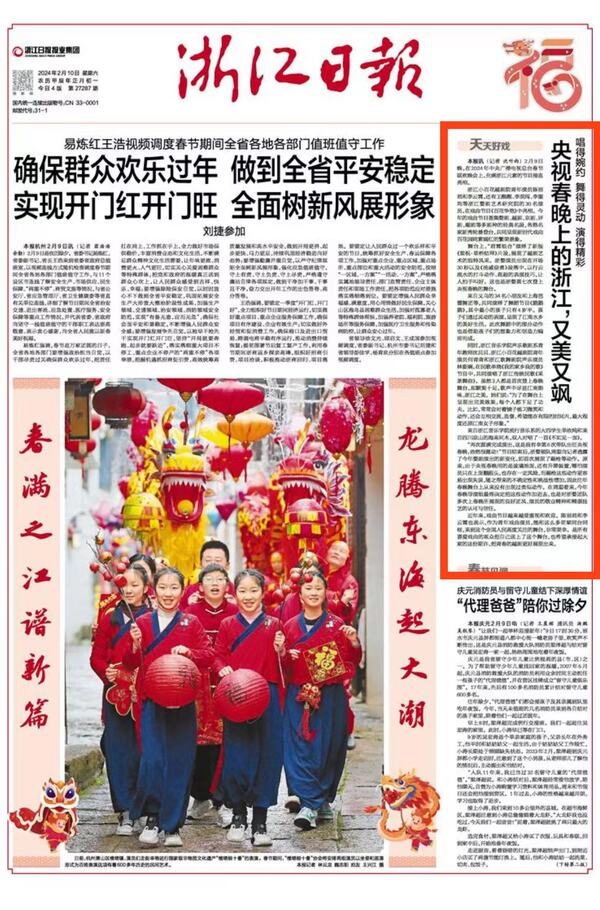 浙江日报:央视春晚上的浙江,又美又飒