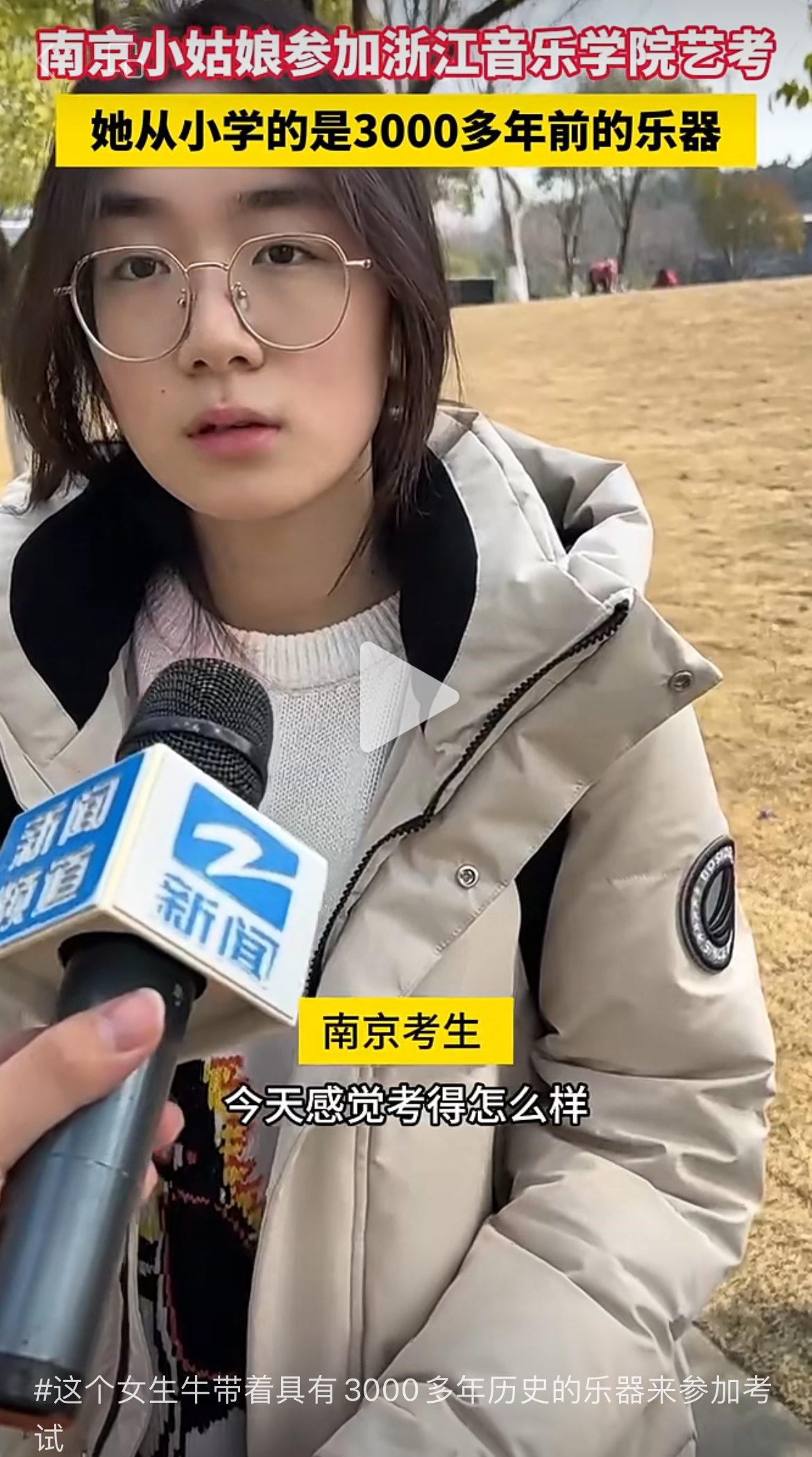 牛视频:这个女生牛带着具有3000多年历史的乐器来参加考试