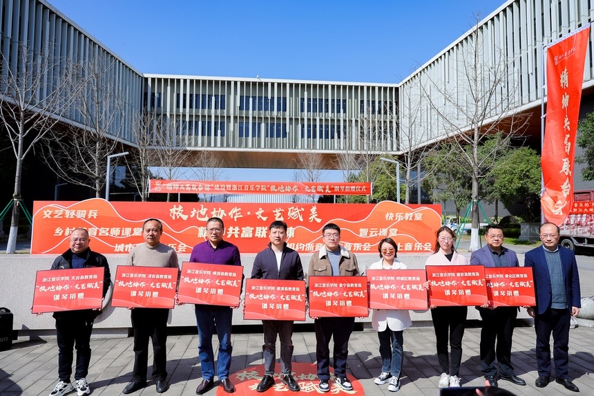 伴随着浙音学生奏响的鼓乐声,55台钢琴承载着全民美育和精神共富的期冀,也将进一步架起浙江音乐学院的美育帮扶桥梁。浙江音乐学院相关负责人表示,浙音将在此次捐赠基础上,将共建乡土音乐教室、艺术实践基地,定期派遣“文艺轻骑兵”赴各地开展文艺演出、艺术实践、名师课堂等,让高雅艺术融入乡村,激活地方文化活力。