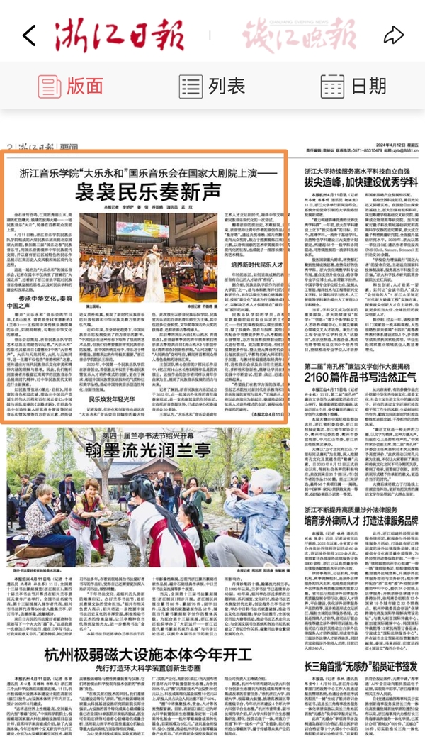 浙江日报:浙江音乐学院“大乐永和”国乐音乐会在国家大剧院上演——袅袅民乐奏新生