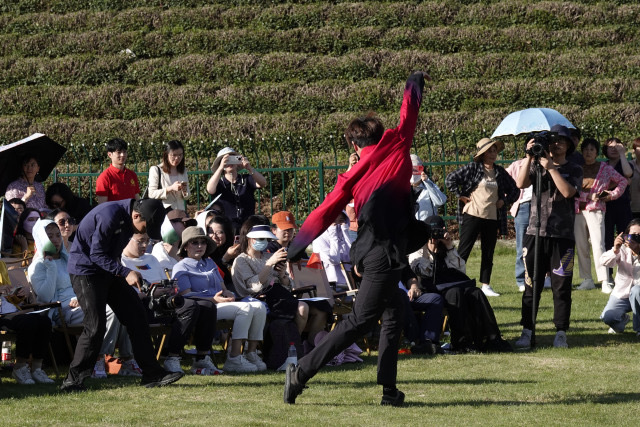 “青青的茶园哟,满呀满山岗……”下午4点,浙江音乐学院学生的舞蹈伴随着村民的歌声,音乐会拉开序幕。随着《中国之梦》《如愿》《稻香》等乐曲相继上演,不知不觉夕阳在山,茶田下、草坪中,人群与音符共振。