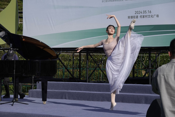 音乐会上,火遍全网的青年舞蹈家、浙江音乐学院教授刘福洋作为何家村的“艺术村长”,与浙江音乐学院教授陈琼共同演绎了钢琴和舞蹈节目《鸿雁》。舞姿悠扬,琴声空灵,观众们纷纷沉醉在醇美的旋律中。