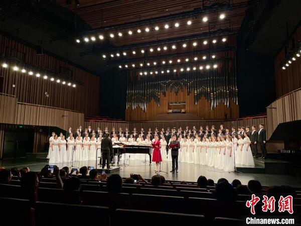 音乐会上,百余位该校师生共同演唱贝多芬《d小调第九交响曲》(合唱)和《长征组歌》。