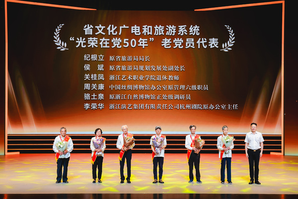 演出前,举行了省级文化广电和旅游厅系统“两优一先”、先锋支部颁奖仪式,省文化广电和旅游厅党组书记、厅长陈广胜为老党员代表颁发“光荣在党50年”纪念章,代表厅党组向6位“光荣在党50年”的老党员致以崇高敬意,向受到表彰的先进集体和优秀个人表示热烈祝贺,向厅系统广大党员致以节日的问候。