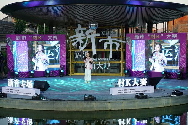 盛夏之夜,歌声点亮水上舞台。近日,在德清新市古镇运河新天地,村K大赛正式开场。