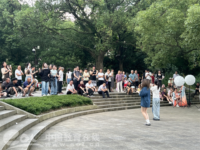 青年学子在东湖景区的核心区域——戏台、九曲桥及湖心亭进行了戏曲专场演出。演出汇聚了经典戏曲选段,演员们以精湛的技艺、饱满的情感,展现了戏曲艺术的独特魅力,赢得了现场观众的阵阵掌声与高度赞誉。
