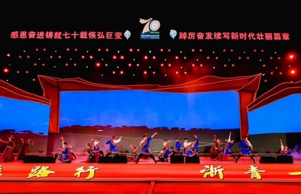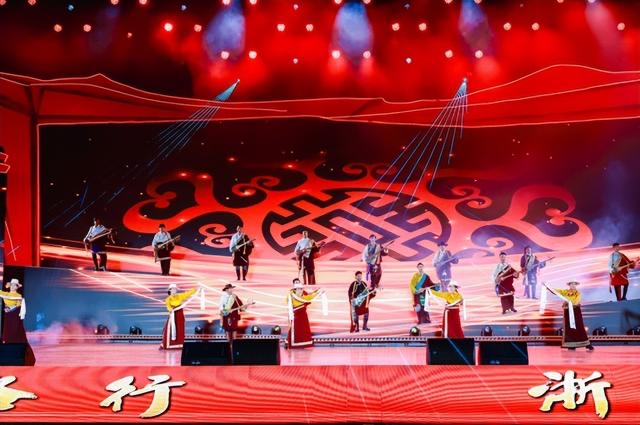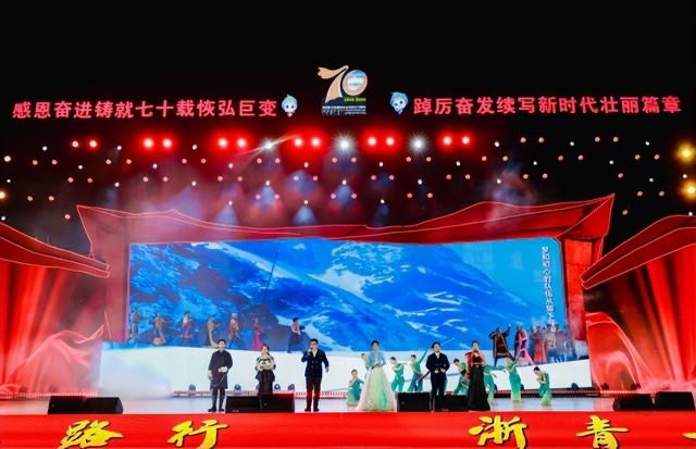 “宋韵丝路行 浙青一家亲”海西蒙古族藏族自治州成立70周年文艺晚会昨天在青海省海西州德令哈市举行。晚会以“山海相连”“大美不言”和“幸福家园”三个篇章,描绘了一幅浙青两省人文相融、民族团结的壮丽画卷,展现了浙江援建青海海西十四载,两地携手并进、共谋发展的深厚情谊。