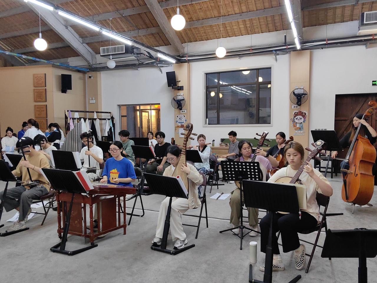 除了表演,戏曲演出中的乐队也十分重要,俗话说“乐队半台戏”。这次,学生们通过器乐合奏与剧目演奏的排练,在团队中协作共进,为观众带来了一场视觉与听觉的双重享受。