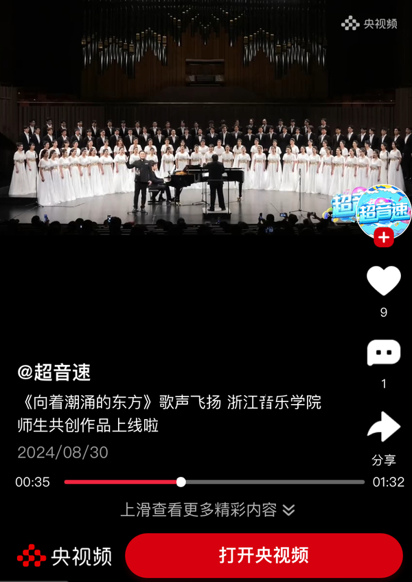央视频:《向着潮涌的东方》歌声飞扬 浙江音乐学院师生共创作品上线啦