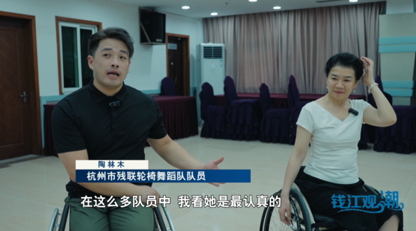 杭州市残联轮椅舞蹈队队员陶林木说:“在这么多队员中,我看她是最认真的,对待每一个动作细节是最抓得准的。”