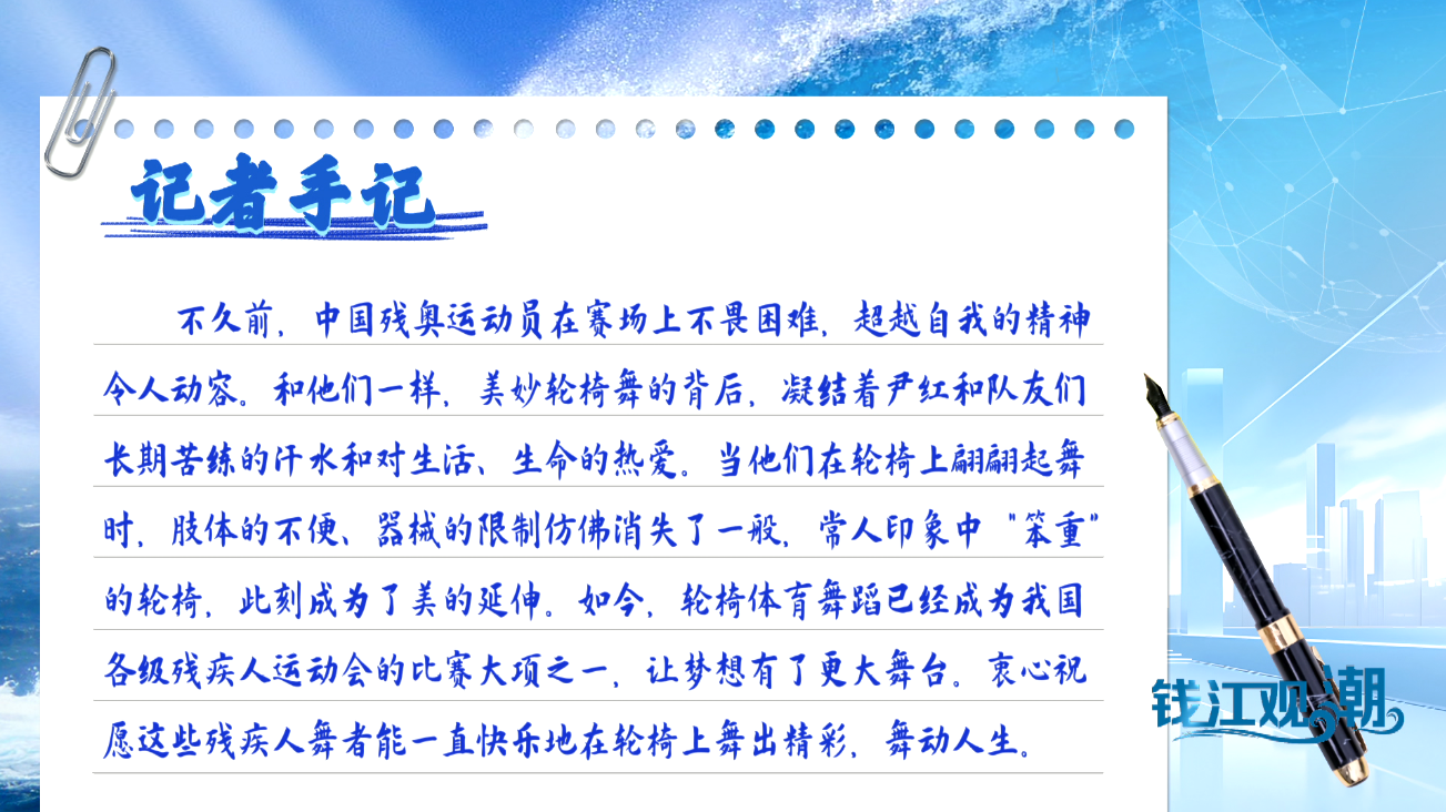 中国蓝新闻:钱江观潮丨轮椅之上 舞动人生