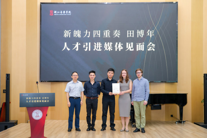 当晚,新魄力四重奏在浙音标准音乐厅举行加盟后的首场演出,为听众们带来天籁之音。接下来,他们将在全国各地上演一系列精彩绝伦的音乐会,并通过大师班、工作坊等多种形式,与浙音师生深入交流,共同探索弦乐四重奏艺术的奥秘与魅力。