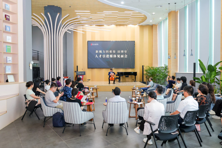 9月19日上午,新魄力四重奏组合、田博年人才引进媒体见面会在浙江音乐学院教师发展中心举行。现场,浙江音乐学院院长王瑞为驻院艺术家团队新魄力四重奏、新引进艺术家田博年颁发聘书。这一历史性的合作,不仅标志着浙江音乐学院发展历程中的一个重要里程碑,更是对“人才培养+艺术实践”创新模式“2.0版”华丽升级的最佳诠释。
