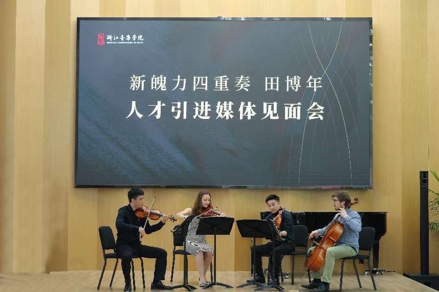 9月19日,新魄力四重奏组合、田博年人才引进媒体见面会在浙江音乐学院举行,浙江音乐学院院长王瑞为驻院艺术家团队新魄力四重奏、新引进艺术家田博年颁发聘书。