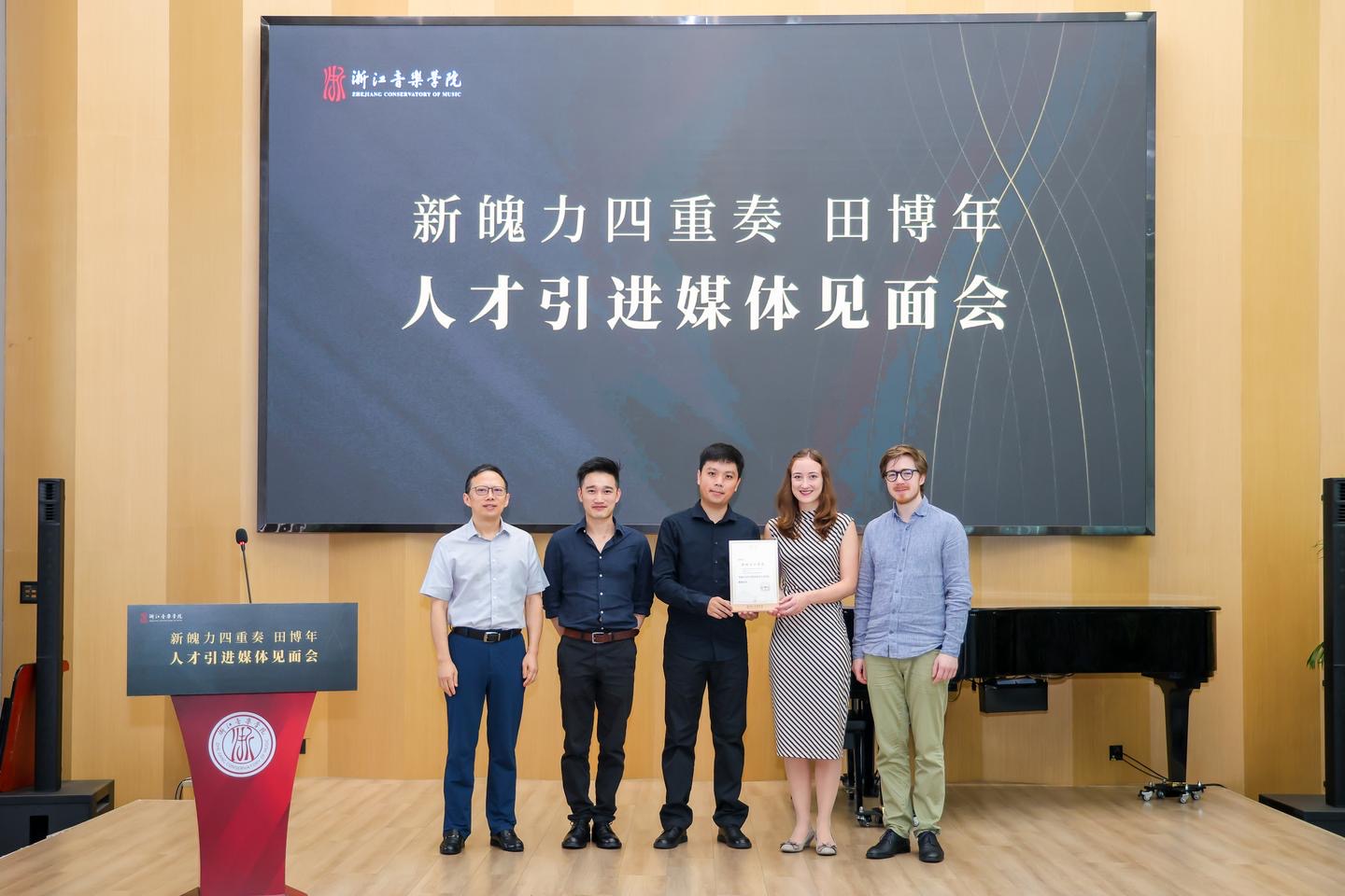 9月19日上午,新魄力四重奏组合、田博年人才引进媒体见面会在浙江音乐学院教师发展中心举行。
