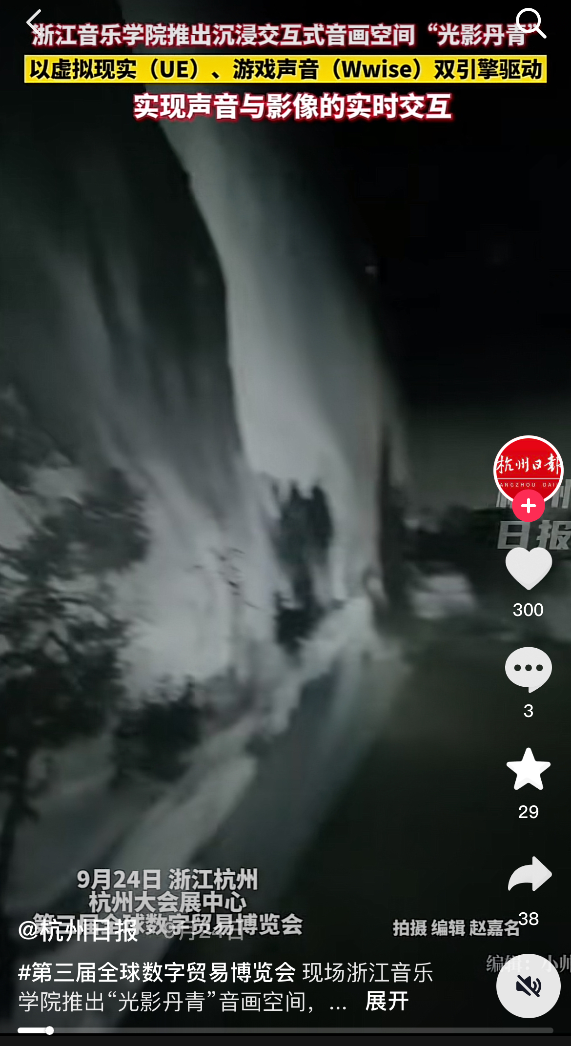 杭州日报:第三届全球数字贸易博览会 现场浙江音乐学院推出“光影丹青”音画空间,超沉浸,能互动!