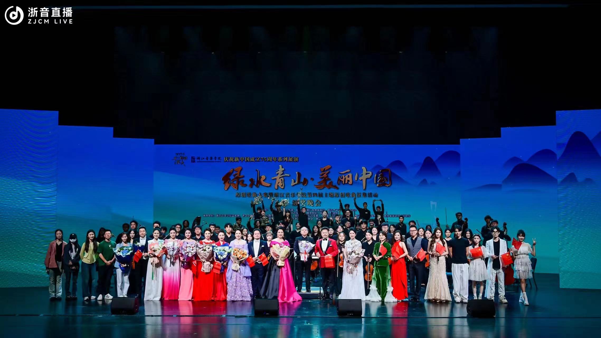 为庆祝新中国成立75周年,9月27日晚,“绿水青山·美丽中国”原创歌曲大赛暨浙江音乐学院第四届主题原创歌曲征集活动颁奖晚会在大剧院隆重举行。晚会现场气氛热烈,座无虚席,来自社会各界的音乐爱好者、文化学者、各界嘉宾和浙音师生代表齐聚一堂,共同见证并沉浸在这场音乐盛宴之中。