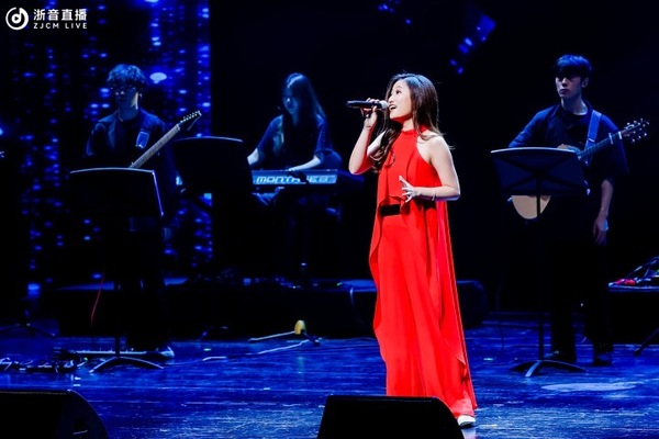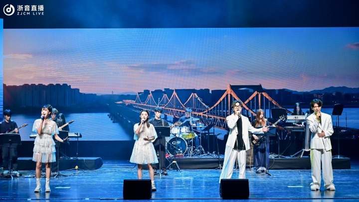 晚会的下半场由浙江音乐学院乐队学院伴奏,两首以“绿水青山”为主题的原创歌曲相继唱响,旋律悠扬,歌词深情。