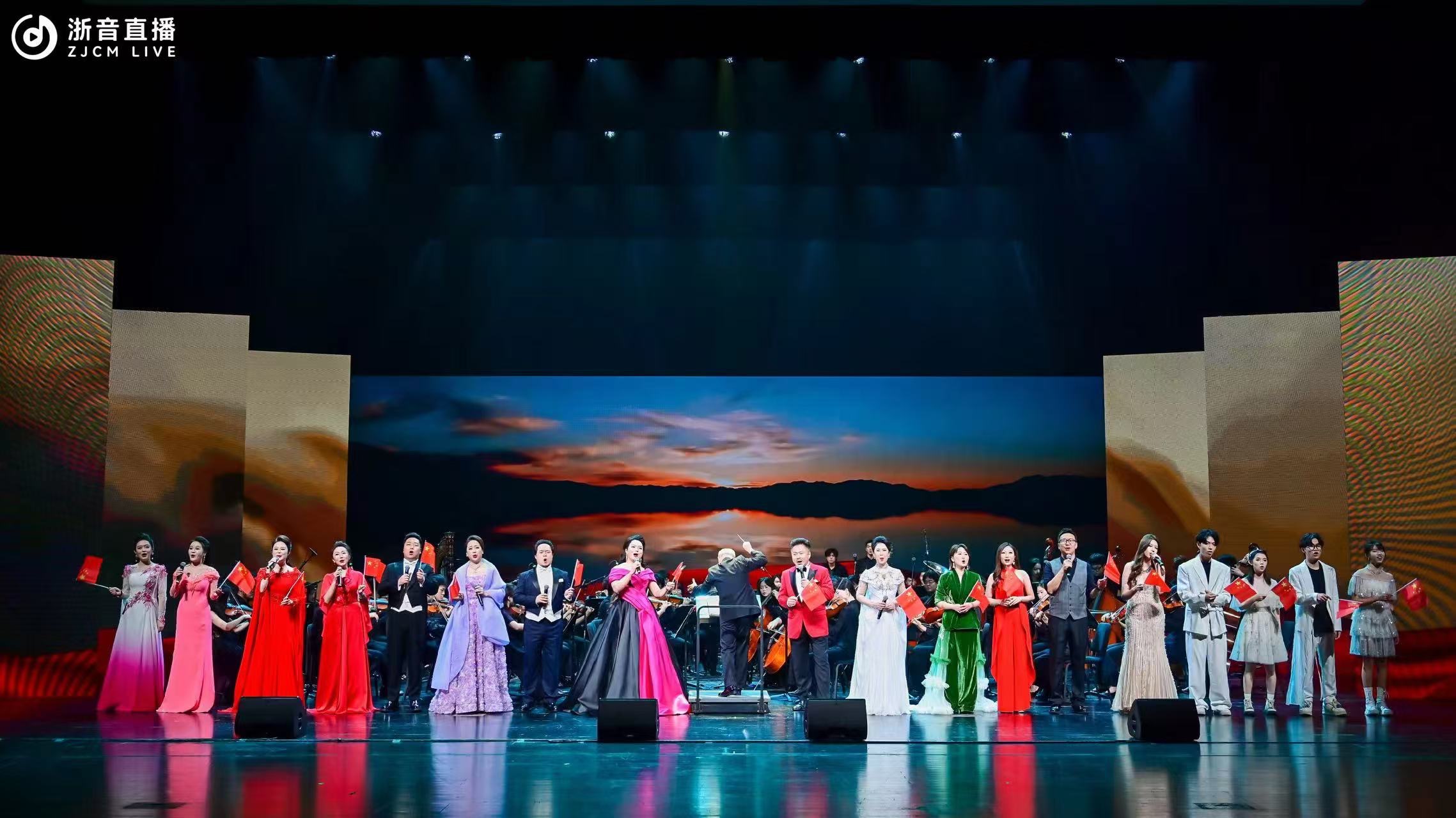 在这个特殊的日子里,《我爱你中国》《我和我的祖国》两首歌曲将晚会推向高潮。朴素而真挚的歌词、深情而激昂的旋律,唤起了观众对祖国的无限热爱。歌声中,既有对祖国母亲的深情告白,也有对中华民族伟大复兴的坚定信念。在全体人员合唱《我和我的祖国》中,晚会正式落下帷幕。