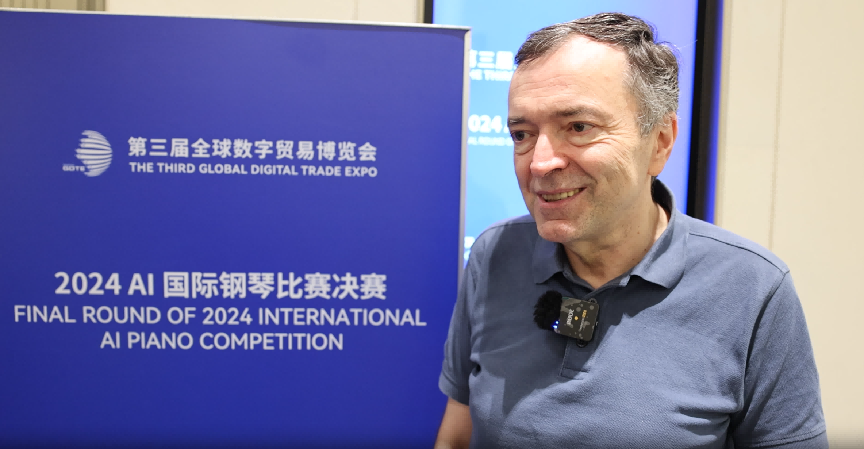 9月28日,由浙江音乐学院和杭州市商务局主办的「全球首届AI歌曲创作大赛」和「2024年AI国际钢琴比赛决赛」在杭州第三届全球数字贸易博览会开展举办。来自全球的音乐家、学者齐聚一堂,就AI在音乐创作与表演中的最新进展、挑战与机遇展开了深入探讨。浙江音乐学院院长王瑞,国际电子音乐联合会主席帕纳约蒂斯·科克拉斯(PanayiotisKokoras),浙江音乐学院特聘教授、杭州国际电子音乐节艺术总监张小夫,德国斯图加特音乐与表演艺术学院钢琴系教授彼得·纳吉(PÉTERNAGY),浙江音乐学院硕士生导师、教授周铿接受凤凰网记者采访提问。