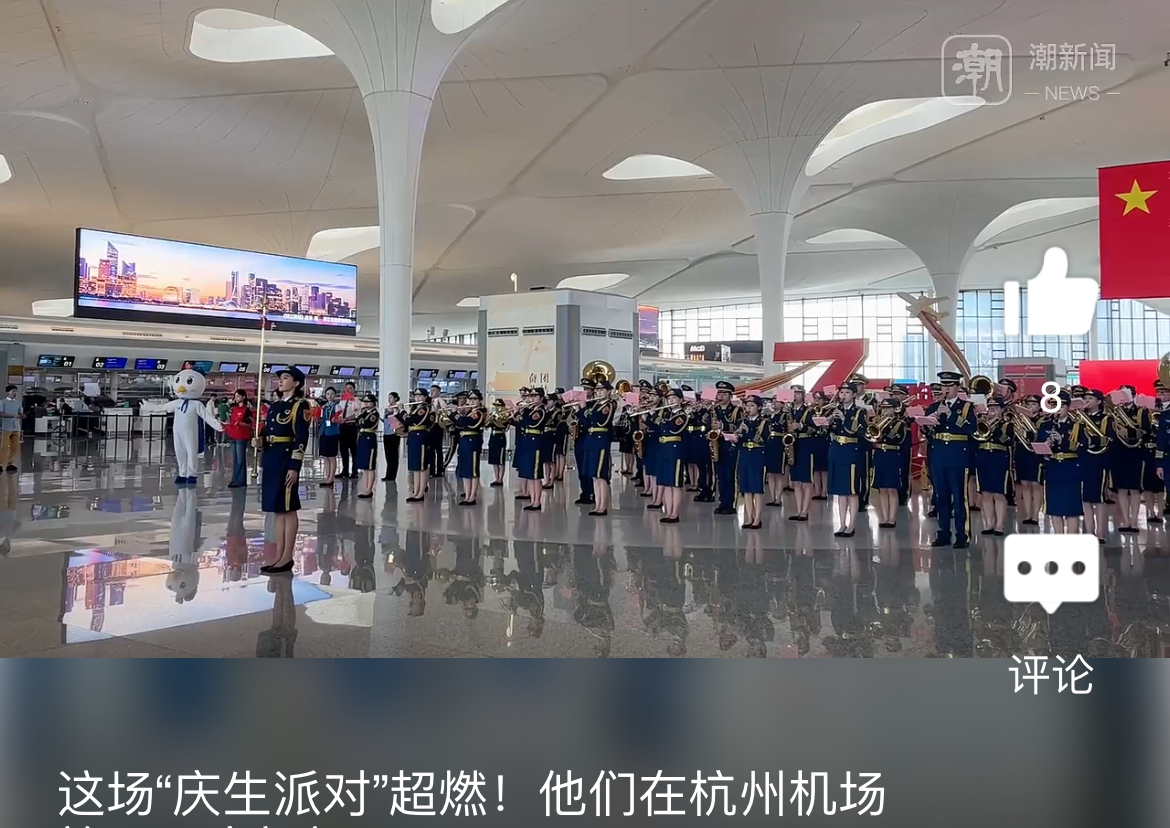 潮新闻:这场“庆生派对”超燃!他们在杭州机场放飞国庆祝福