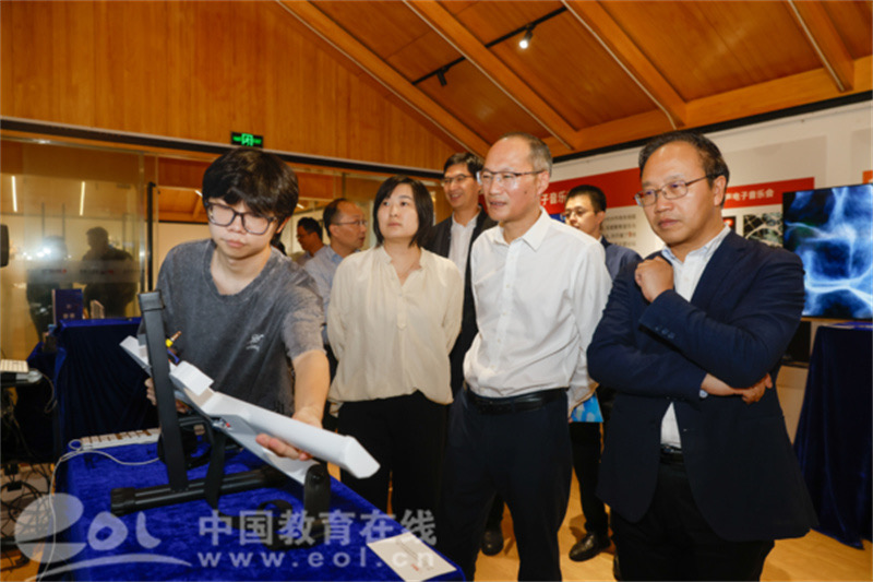 本次活动恰逢全省高校“百个艺术院系支部联村共建”工作现场推进会召开。会前,省委教育工委专职副书记、省教育厅党组副书记许翰信,中国美术学院党委书记金一斌、西湖区委常委、组织部长李军以及省教育厅组织处、各兄弟高校组织部、西湖区委组织部和转塘街道党工委负责人等领导一行在学院党委委员,组织部部长李俊陪同下视察数字音乐展厅,他们观看及操作每一件艺术科技展览作品,认真听取关于作品创作理念以及艺术与科技结合成果作品的介绍。