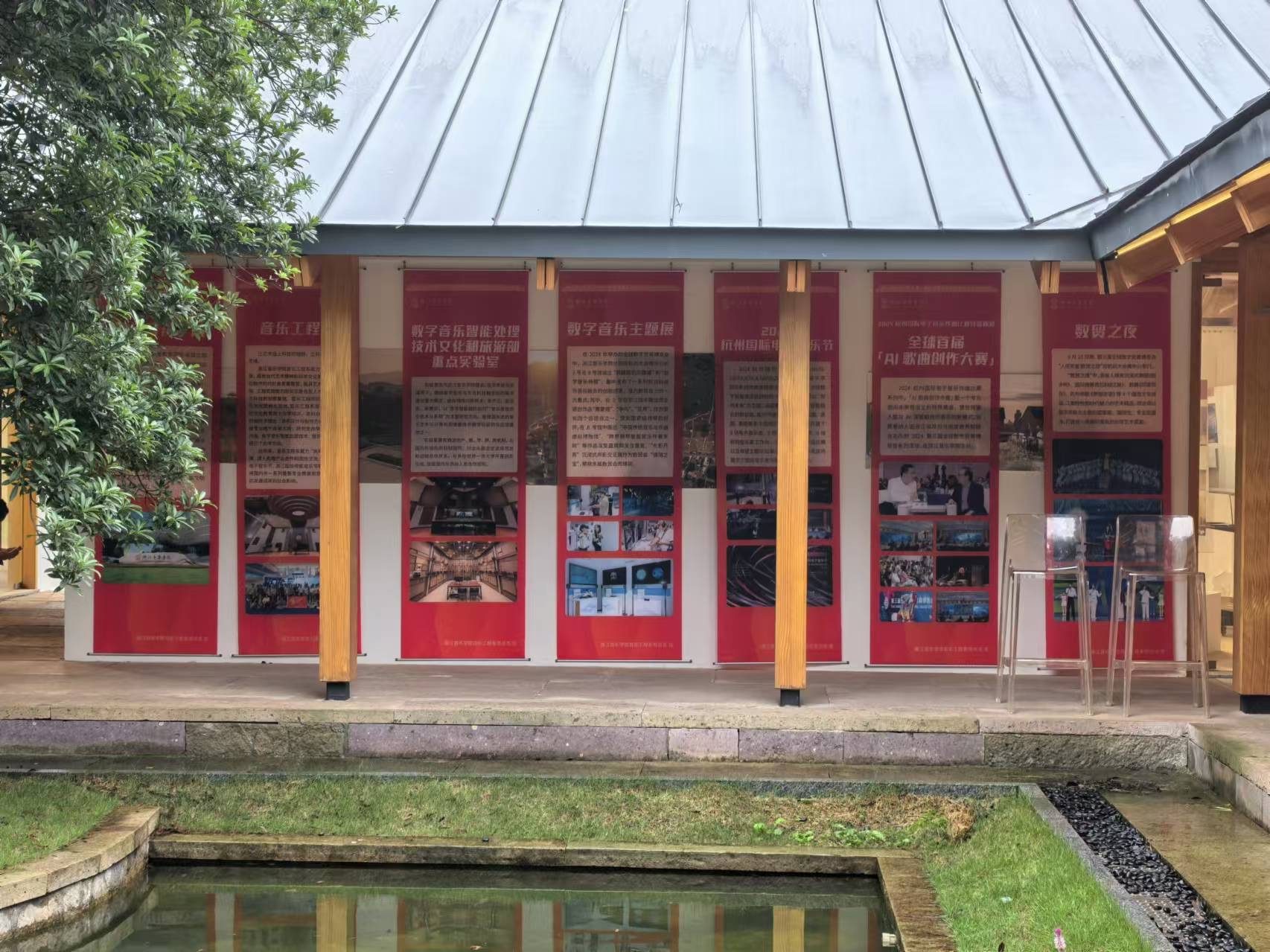 10月16日,浙江音乐学院在西湖区长埭村文化礼堂设立数字音乐展厅,向当地村民百姓展出科技与艺术交融的部分成果。