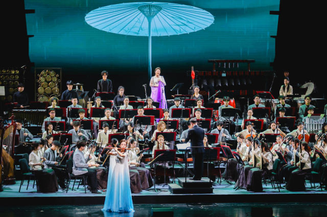 “《良渚年丰》篇章中,我们用了石头、陶罐等农具做乐器,展现良渚时期的农耕文明。在这些原始的节奏里,音乐呈现出了良渚先民祭祀风调雨顺的场景。”本场音乐会总指挥、浙江音乐学院民族乐队学院艺术总监王甫建介绍道,“从《年丰》到《春江花月夜》《忆江南》,再到《亘古力量》,这场音乐会以时间为维度,展现了中华文明的延续、发展和传承。”