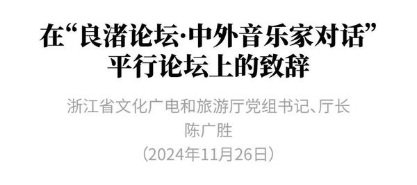 11月26日,“中外音乐家对话”平行论坛在杭州良渚举行。省文化广电和旅游厅党组书记、厅长陈广胜出席并致辞,现刊发致辞全文。