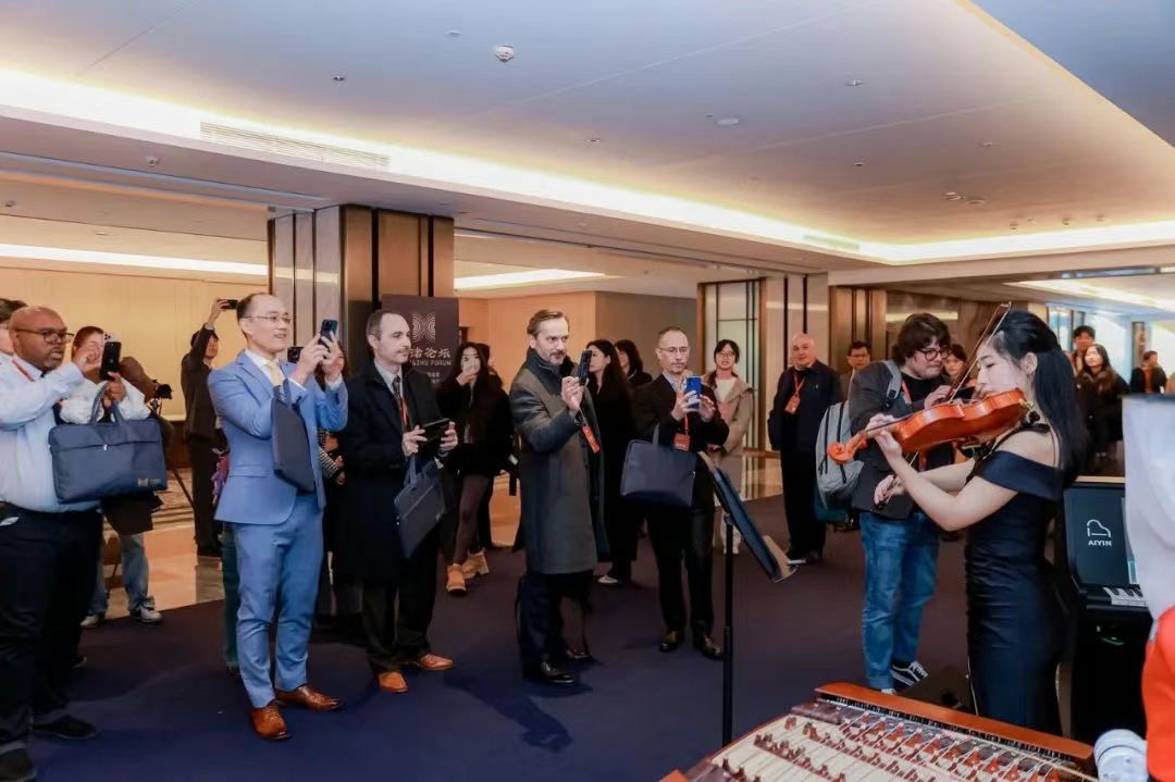 《高山流水》是中国十大古曲之一。相传在春秋时期,有位著名琴师伯牙在船中弹奏,岸边的樵夫钟子期居然能清晰分辨出琴声中的巍巍高山和滚滚流水,两人因此成了极好的朋友。《高山流水》这一曲目曾于1977年被刻入金唱片,随美国“旅行者号”探测器进入太空,代表人类文明在浩瀚宇宙中寻觅知音。这也是当时入选的27首世界名曲中唯一完整保留、未作删节的曲子。以琴会友、以乐寄情,是中国素有的传统。我们愿借“高山流水”般的音符广结朋友,与各国音乐家和艺术机构一道,致力于中外音乐的交融发展,在学术研究、创作应用、文化交流、人才培养等方面取得更多合作成果,奏响各美其美、美美与共的时代乐章。