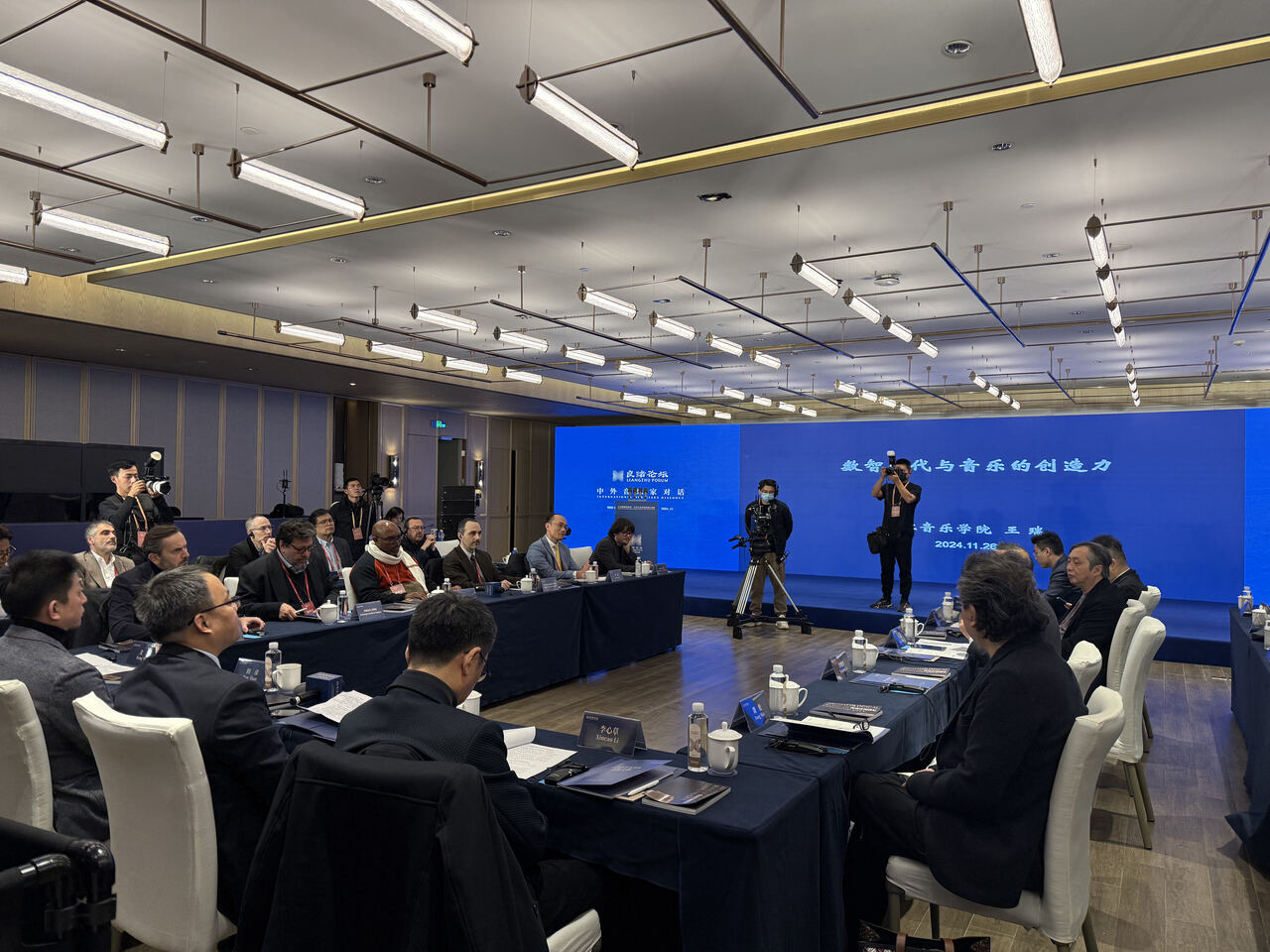 与此同时,会场内,各国音乐家正围绕“古代音乐艺术与人类文明发展”和“人工智能时代与未来艺术发展”展开交流对话。