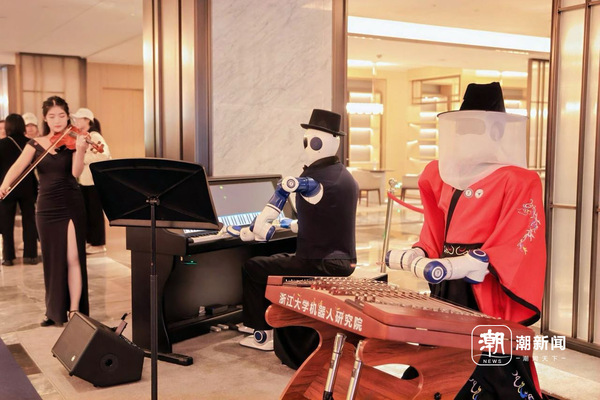 11月26日,在“中外音乐家对话”会场外,钢琴、扬琴和小提琴协奏的一首《梁祝》“先声夺人”。大家首先被悠扬的声音吸引,走近观看后立即停下了脚步,因为表演者很特别,由钢琴演奏机器人、扬琴演奏机器人,与浙江音乐学院管弦系大三学生邓咏宁共同合作演出曲目。