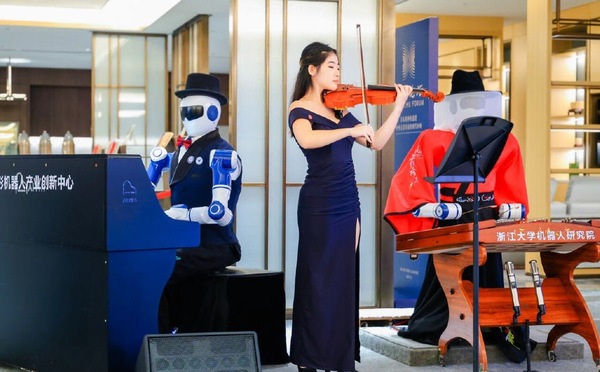 論壇現場,鋼琴機器人和揚琴機器人與浙江音樂學院學生合奏的中國經典曲目《梁祝》吸引了眾多嘉賓的目光。AI技術對音樂創作領域的影響也成為了本次論壇的重要議題。