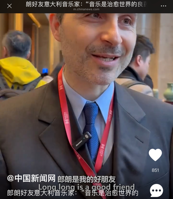 中国新闻网:郎朗好友意大利音乐家:“音乐是治愈世界的良药”
